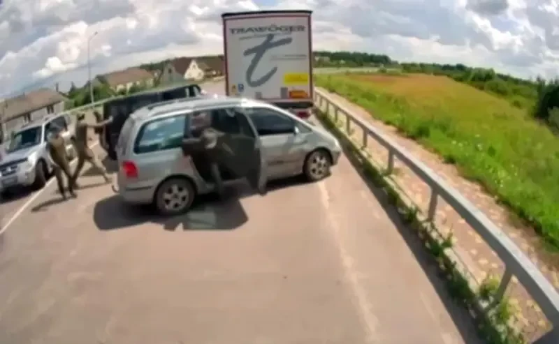 Забавный, но примечательный эпизод был заснят на камеру дорожного наблюдения. Сотрудники ТЦК на двух автомобилях на трассе настигли и остановили минивэн, намереваясь как минимум вручить повестку водителю или пассажиру, а скорее всего сразу отвезти на пункт сбора с последующим зачислением в ряды ВСУ и отправкой на фронт.