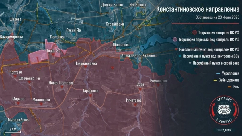 Главные новости » Эксклюзив » ВС РФ ведут ожесточённые боевые действия на двух участках на Константиновском направлении: свежие данные от 24.07.2025