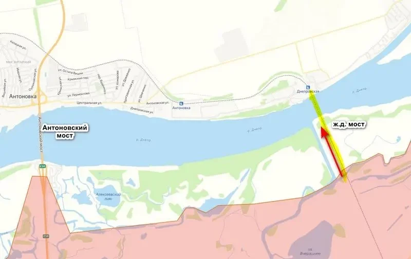 По данным противника, в последнюю неделю российские войска резко активизировались в районе железнодорожного моста, проводя по несколько атак каждый день. По словам спикера Сил обороны Юга Владислава Волошина, Антоновский железнодорожный мост находится в самом узком месте Днепра и контроль над ним позволяет ВС РФ наносить удары по позициям ВСУ на правом берегу, а также совершать вылазки. При этом противник ничего не говорит о зачистке моста российскими войсками, лишь подчеркивает, что против формирований ВСУ там воевало какое-то «элитное» подразделение ВС РФ.