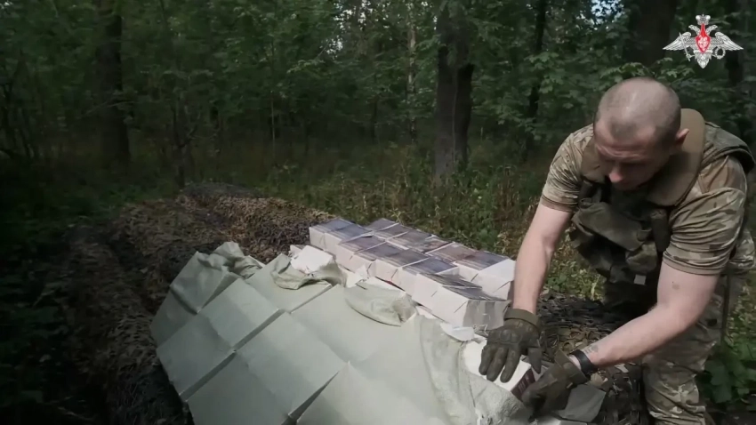 Российский артиллерист готовит агитационный снаряд. Перчатки обеспечивают удобство работы. Фото Минобороны РФ