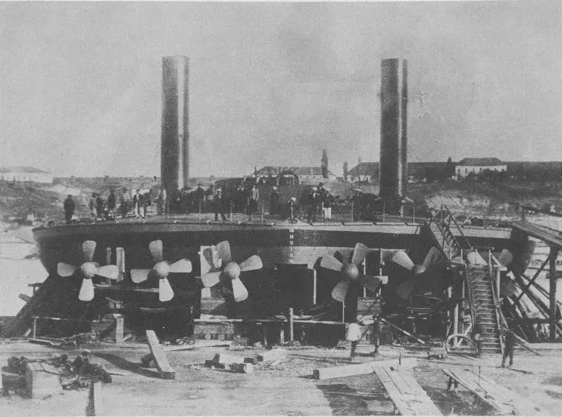 Сложнее было определиться с количеством кораблей. Хотелось много и сразу, но строить на Чёрном море на тот момент было негде: Николаевские верфи не имели опыта строительства металлических кораблей. Поэтому первоначально предполагалось в Санкт-Петербурге и Кронштадте построить 10 поповок и в разобранном виде отправить их на Чёрное море, где собрать на Николаевских верфях. Но... Бухгалтерия! Осетра пришлось существенно урезать: сами корабли строить 24 метров в диаметре и водоизмещением в 1200 тонн, а число уменьшить до четырёх: два в Питере с последующей сборкой на Чёрном море, а два — сразу в Николаеве. Впрочем, и на это число денег не хватило, поэтому решили заложить пару кораблей — один на Балтике, другой — на Чёрном море, зато несколько большего размера — 30 метров в диаметре и 3550 тонн водоизмещения.