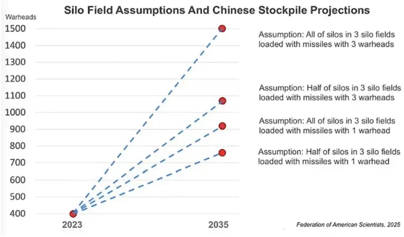 В совокупности эти строительные работы по шахтным МБР (в дополнение к новым дорожно-мобильным базам МБР) представляют собой крупнейшее расширение китайского ядерного арсенала за всю историю. 350 новых китайских ШПУ, находящихся в стадии строительства, превышают количество шахтных МБР, эксплуатируемых Россией, и составляют около трех четвертей от размера всех сил МБР США.
