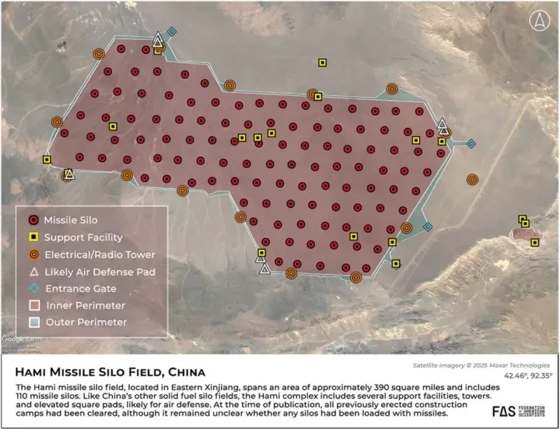 В своем отчете за 2024 год Пентагон подсчитал, что Китай «загрузил по крайней мере несколько МБР» — вероятно, МБР класса DF-31 — в шахты на своих новых шахтных полигонах (Министерство обороны США, 2024).