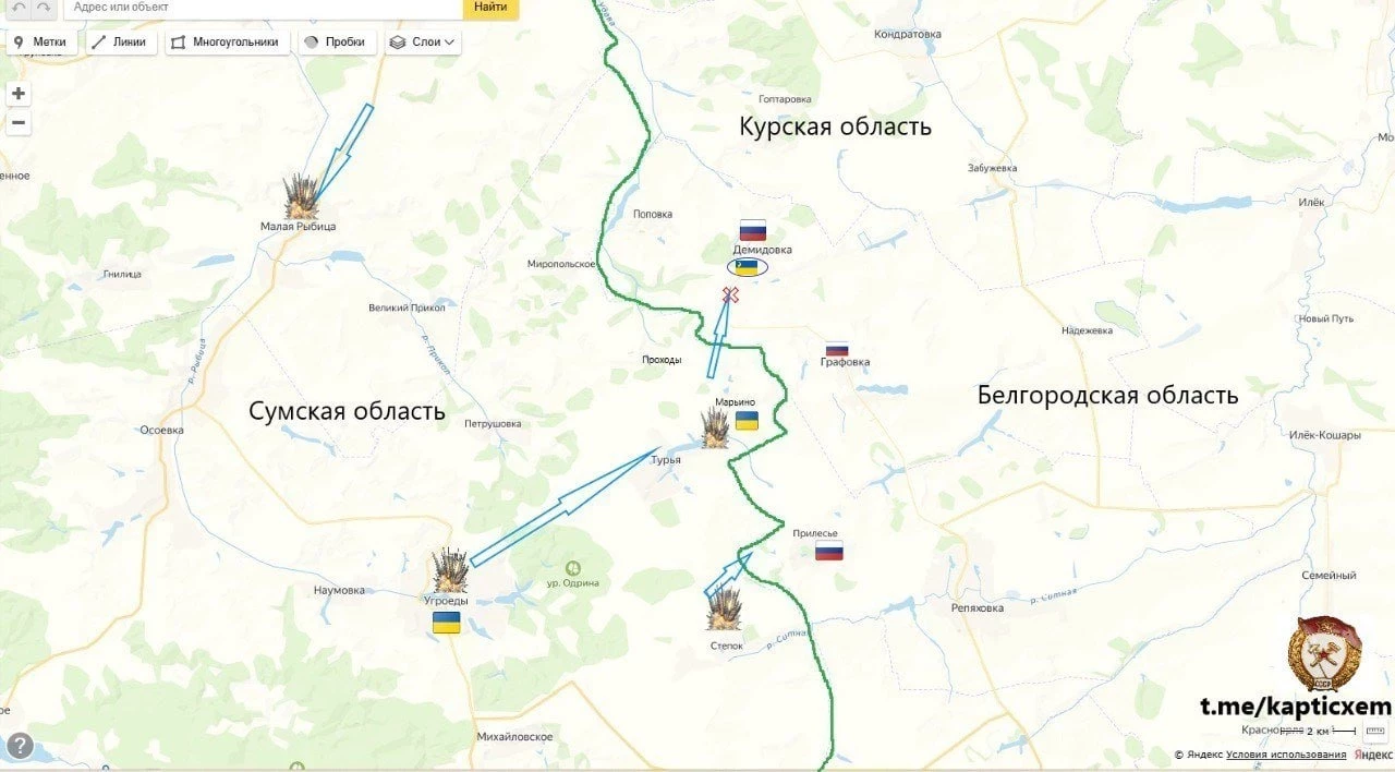 Карта боевых действий в Курской области. Информация на 24 марта