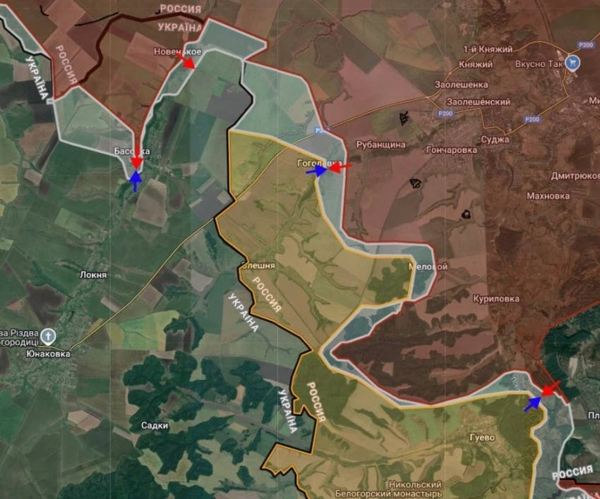 Российские войска расширили контроль территории в районе Басовки, а также под контроль перешло Новенького Сумской области. ВС РФ ведут штурмовые действия в районе Гоголевки и Гуево.