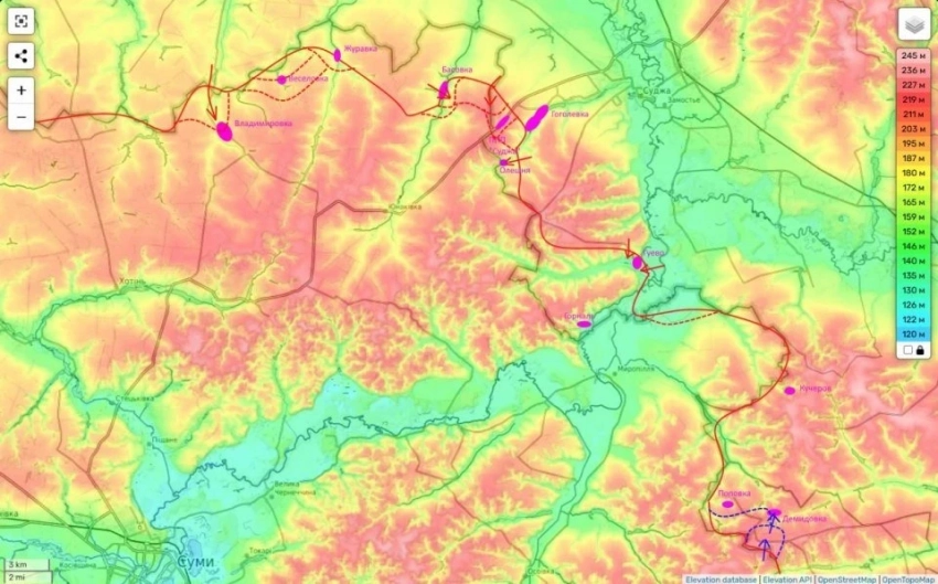 На украинских информационных ресурсах начинается паника из-за активного наступления ВС РФ на Сумскую область. Военные РФ уже освободили несколько небольших населенных пунктов, и сейчас идут бои за село Басовка, которое открывает доступ к логистическому хабу Киева - Юнаковке. С этого направления осуществляется военное снабжение суджанской группировки ВСУ.