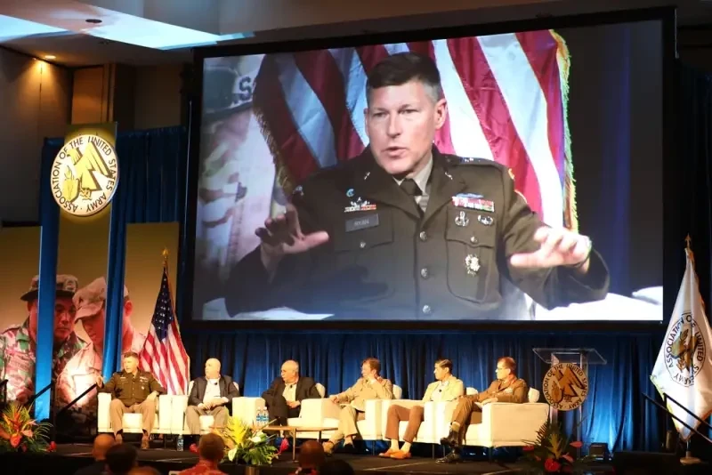 Генерал Райан (ещё в звании генерал-майора) во время публичного выступления в 2023 году.
