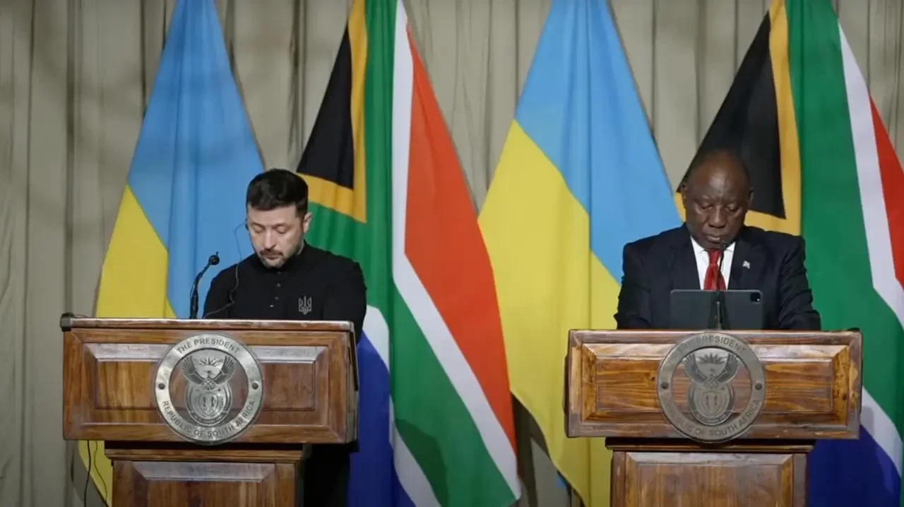 Иногда выражения лиц скажут больше тысячи слов. Примерно так можно охарактеризовать фотографию, сделанную во время совместной пресс-конференции президента ЮАР Сирила Рамафосы с украинским визитёром Зеленским.