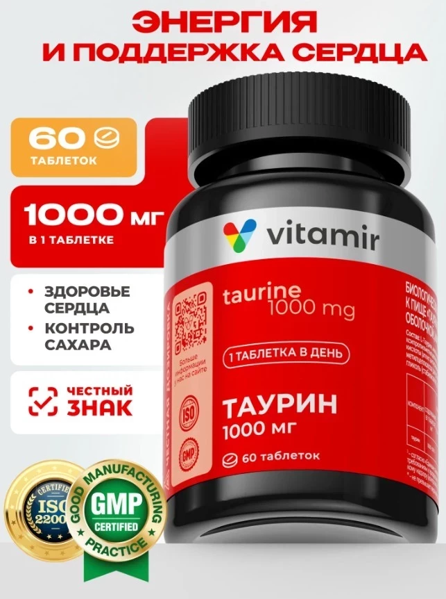 Таурин 1000 мг от VITAMIR PRO — это лаконичный, но мощный инструмент для тех, кто привык выкладываться на максимум. Одна таблетка в день насыщает организм 1000 мг чистого L-таурина, аминокислоты, отвечающей за мышечный тонус, устойчивость к физическим нагрузкам и нормализацию нервной системы. Эта добавка входит в топ БАДов для спортсменов благодаря своей эффективности, безопасности и универсальности — подходит мужчинам и женщинам, не содержит сложных схем приёма и легко сочетается с другими нутриентами.