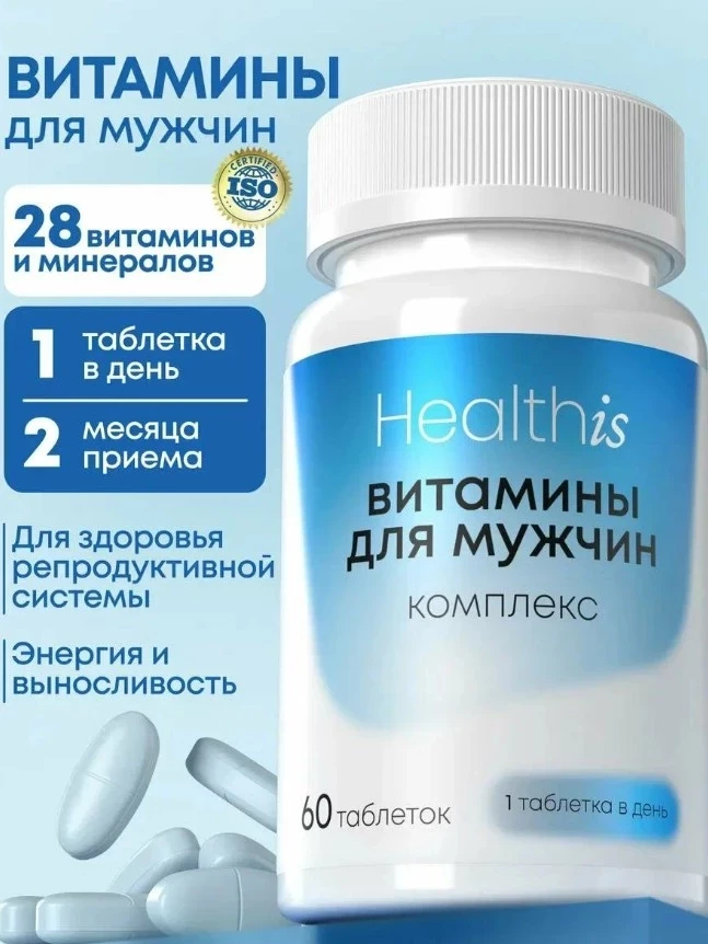 Витамины для мужчин от HealthIs — это сбалансированная формула, входящая в топ БАДов для спортсменов, созданная для тех, кто хочет держать тело и мозг в тонусе. Комбинация цинка, магния, йода и витаминов группы B работает как швейцарские часы: поддерживает гормональный баланс, укрепляет иммунитет, улучшает сон и снижает стресс. В составе есть всё, что нужно мужскому организму для высокой продуктивности — от антиоксидантной защиты до укрепления костей и сердца. Один курс — два месяца уверенной работы на максимум.