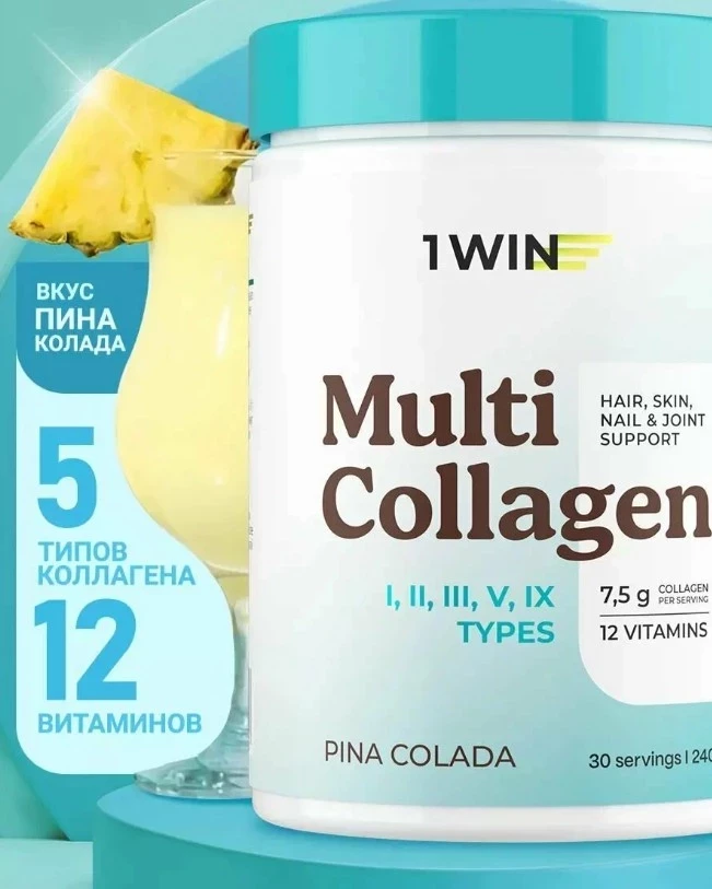 Мульти коллаген с витамином C от 1WIN — это концентрированная ударная доза красоты и поддержки опорно-двигательной системы в одной порции. Пять видов коллагена и витаминный коктейль в составе работают синергично: кожа становится упругой, волосы — плотнее, ногти — крепче. Гидролизованная форма коллагена усваивается быстро, а вкус Пина Колады делает ежедневный приём не просто полезным, а ещё и приятным. Подходит тем, кто ищет топ БАДов для спортсменов и хочет выглядеть на все сто.