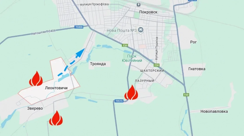 По последним сведениям, российские войска, оказавшись вынужденными отвечать на активизацию действий противника, «насыпали» ему из различных средств огневого поражения: от FPV до тяжёлых огнемётных систем. Это привело к тому, что подразделения ВСУ потеряли ранее занимаемые позиции в Леонтовичах и оказались вынуждены отойти в городскую черту Покровска (Красноармейска).