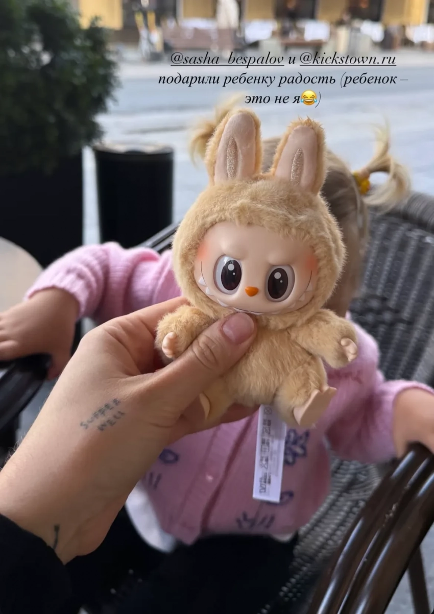 Лабубу Люси ЧеботинойНекоторые звёзды пошли дальше: они "используют" своих детей в качестве "прикрытия" для покупки Лабубу, говоря о том, что ребёнок "очень хотел популярную игрушку" и чуть ли не сам повесил её на сумку своей матери. Ляйсан Утяшева призналась, что зверька ей повесила дочь, а Карина Истомина не удержалась и купила дочери от Фёдора Смолова трендовый аксессуар. "Я буду всем говорить, что это не моя игрушка. Хотя на самом деле, конечно же, мне её хотелось", — рассказала Карина в телеграме.