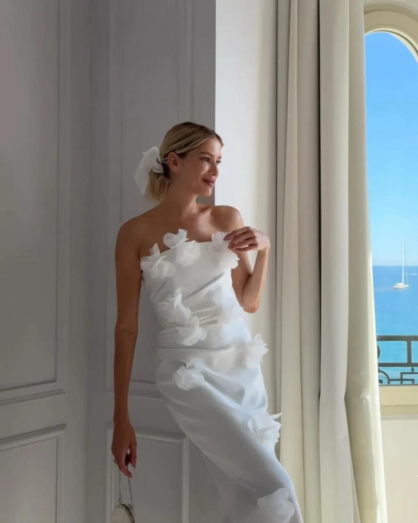 "Ощущая себя невероятно красивой в нём", — прокомментировала образ 38-летняя Перминова. Судя по интерьеру и виду за окном, фотосессия была сделана в Каннах, куда модель прилетала на 78-й международный кинофестиваль со своим бойфрендом, манекенщиком Тарасом Романовым.