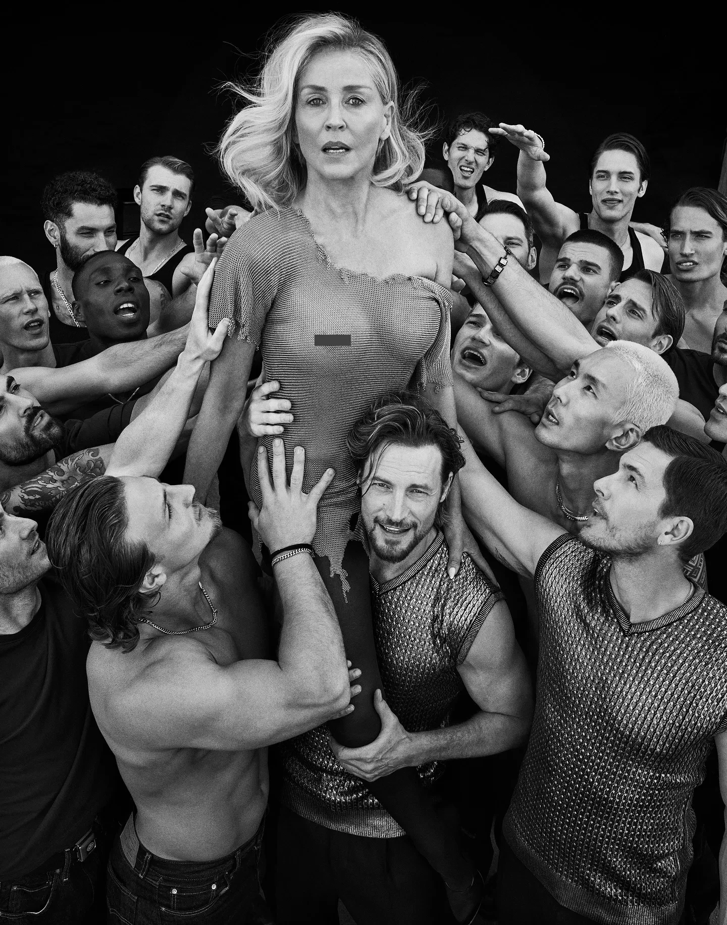 Шэрон Стоун украсила обложку нового номера балканского Vogue. 67-летняя актриса снялась в чёрно-белой фотосессии, в рамках которой позировала практически топлес, в облегающем чёрном платье с прозрачными вставками, а также в белом брючном костюме. Модная съёмка проходила в одной из крупнейших фотостудий Лос-Анджелеса, которую часто используют мировые звёзды для своих проектов.