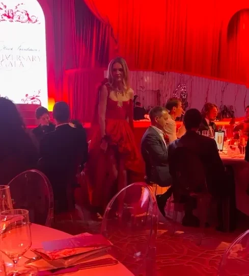 42-летняя супермодель приветствовала гостей со сцены в пышном красном платье с высоким вырезом, а после прошёл показ кутюрной коллекции Ульяны Сергеенко. Для гостей выступила певица также Bebe Rexta и состоялся благотворительный аукцион в поддержку детей. Среди интересных лотов: место на показе Schiaparelli на предстоящей Неделе моды, посещение семейного дома Louis Vuitton и картина художника Damien Hirst.