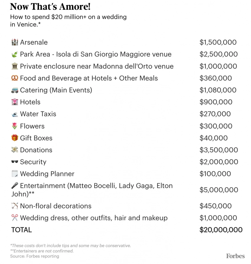 Список трат на свадьбе Джеффа Безоса и Лорен Санчес