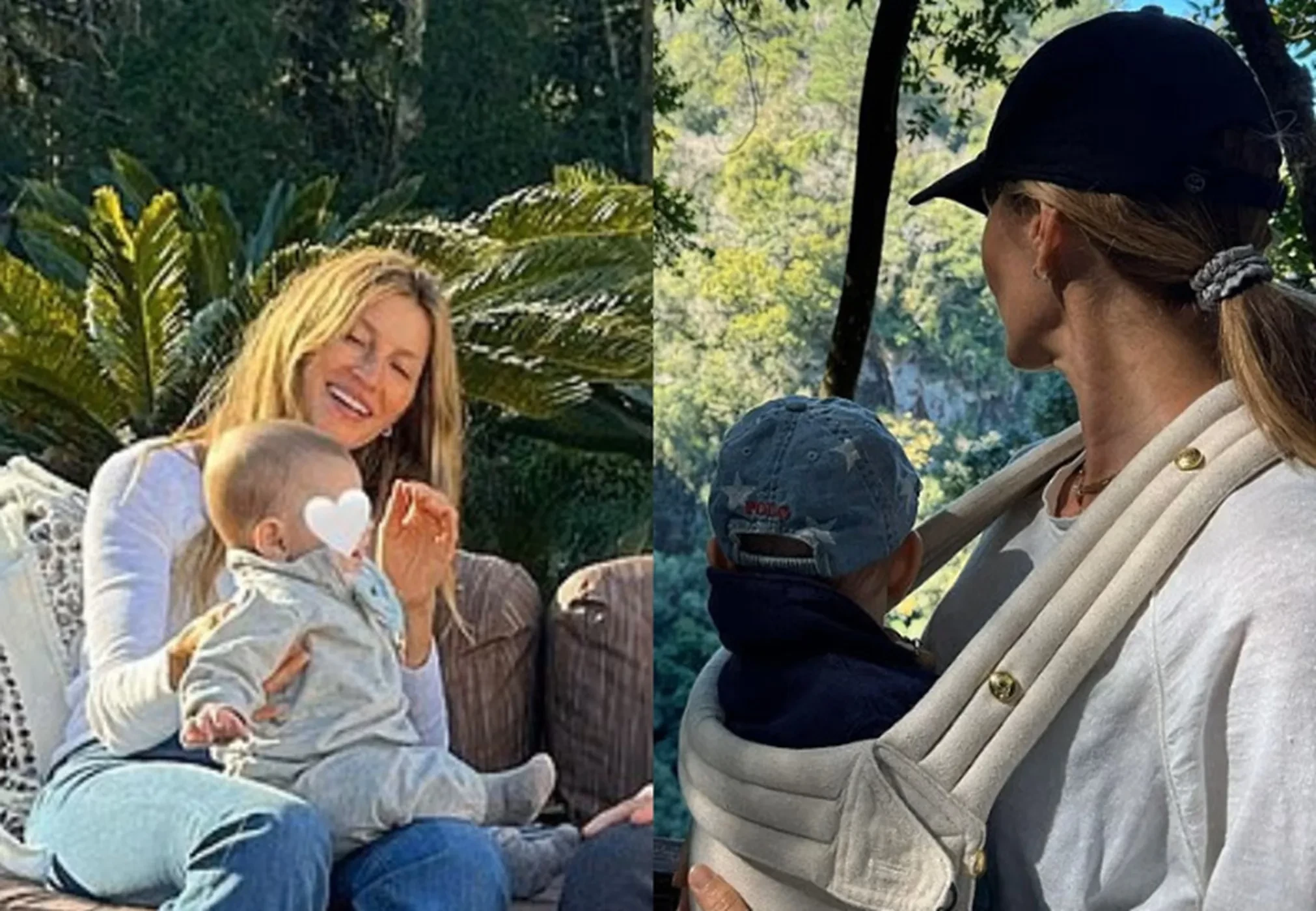 На одном из фото Бундхен стоит со своей сестрой-близнецом Патрисией с праздничными тортами в руках, на другом вся семья собралась за столом посреди лесной чащи. Жизель также показала, как гуляет с пятимесячным сыном, имя которого пока не раскрывает, по окрестностям.
