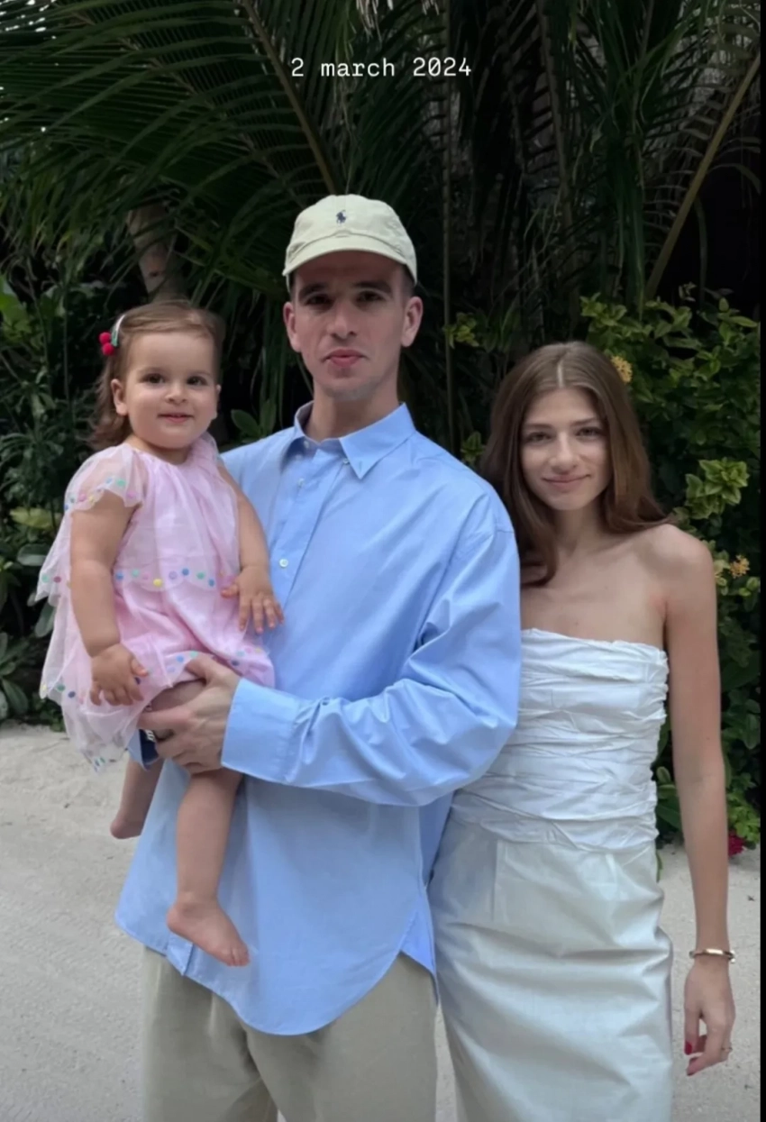 Федук и Саша Новикова с дочерью/Фото: личный архивНапомним, что Саша Новикова дочь ресторатора Аркадия Новикова. Она тайно вышла замуж за исполнителя хита "Розовое вино" в 2021 году после трёх лет отношений. Дочь Нина родилась у пары в 2022 году. Семья проживает в Лондоне, но периодически наведывается в Россию. Ранее в интервью Новикова рассказывала, что самым трудным для неё был первый месяц материнства.