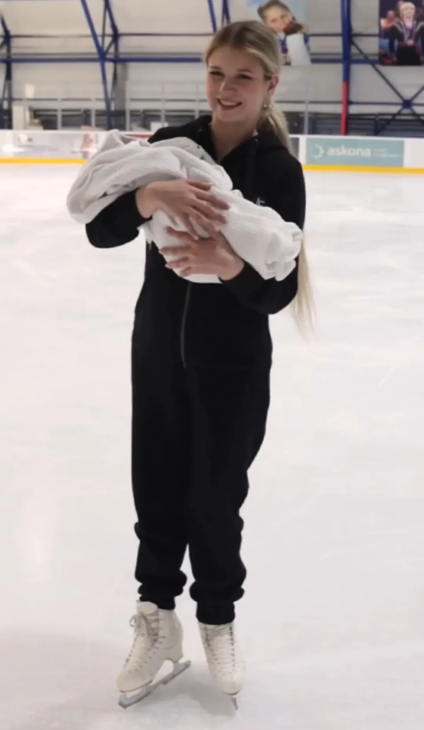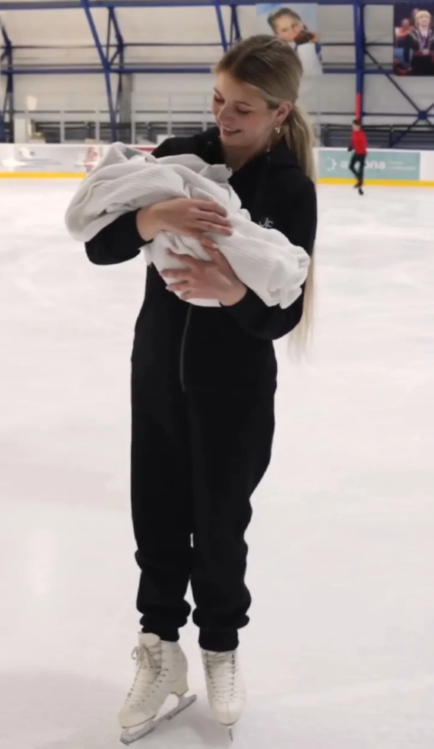 21-летняя Александра Трусова вышла на лёд с новорождённым сыном. Спортсменка опубликовала в своих соцсетях видео, запечатлевшее её на коньках и с малышом на руках.