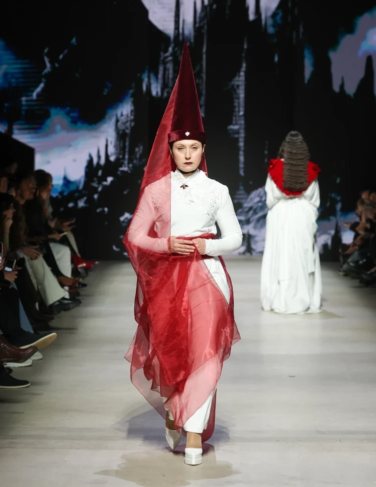 Московская неделя моды продолжается: Дина Саева в алом платье на показе Solangel, наряды с картинами Микеланджело от Sergey Sysoev и готическое шоу от Сузанны Барс