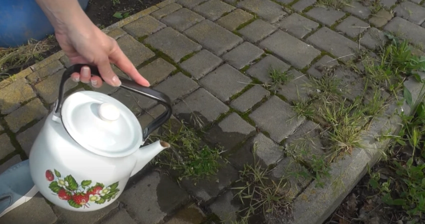 Однако специалисты предлагают куда более безопасный и простой метод, который доступен абсолютно каждому. Всё, что вам нужно, — это… обычный кипяток! Да-да, простой горячий чайник способен сотворить чудо в борьбе с сорной растительностью.