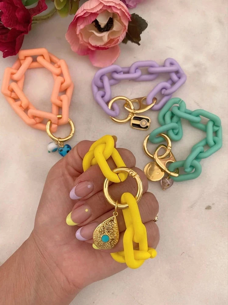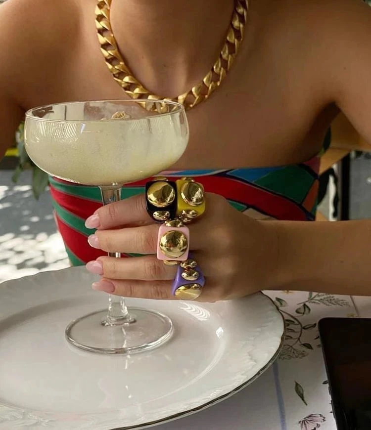 Кольца и браслеты из акрила, смолы и пластика уже несколько сезонов подряд находятся на пике популярности. Сегодня это не просто милые безделушки, а полноценные элементы стиля — будь то дневной образ или вечерний выход. Они легкие, удобные, броские — и, главное, создаются из переработанных и перерабатываемых материалов, что делает их еще и экологичным выбором.