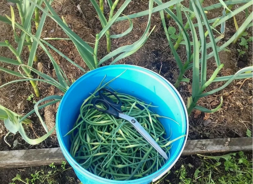 Стрелки чеснока отнимают у растения силы, тормозя развитие луковицы. Их нужно удалять, как только они достигнут 15 см: